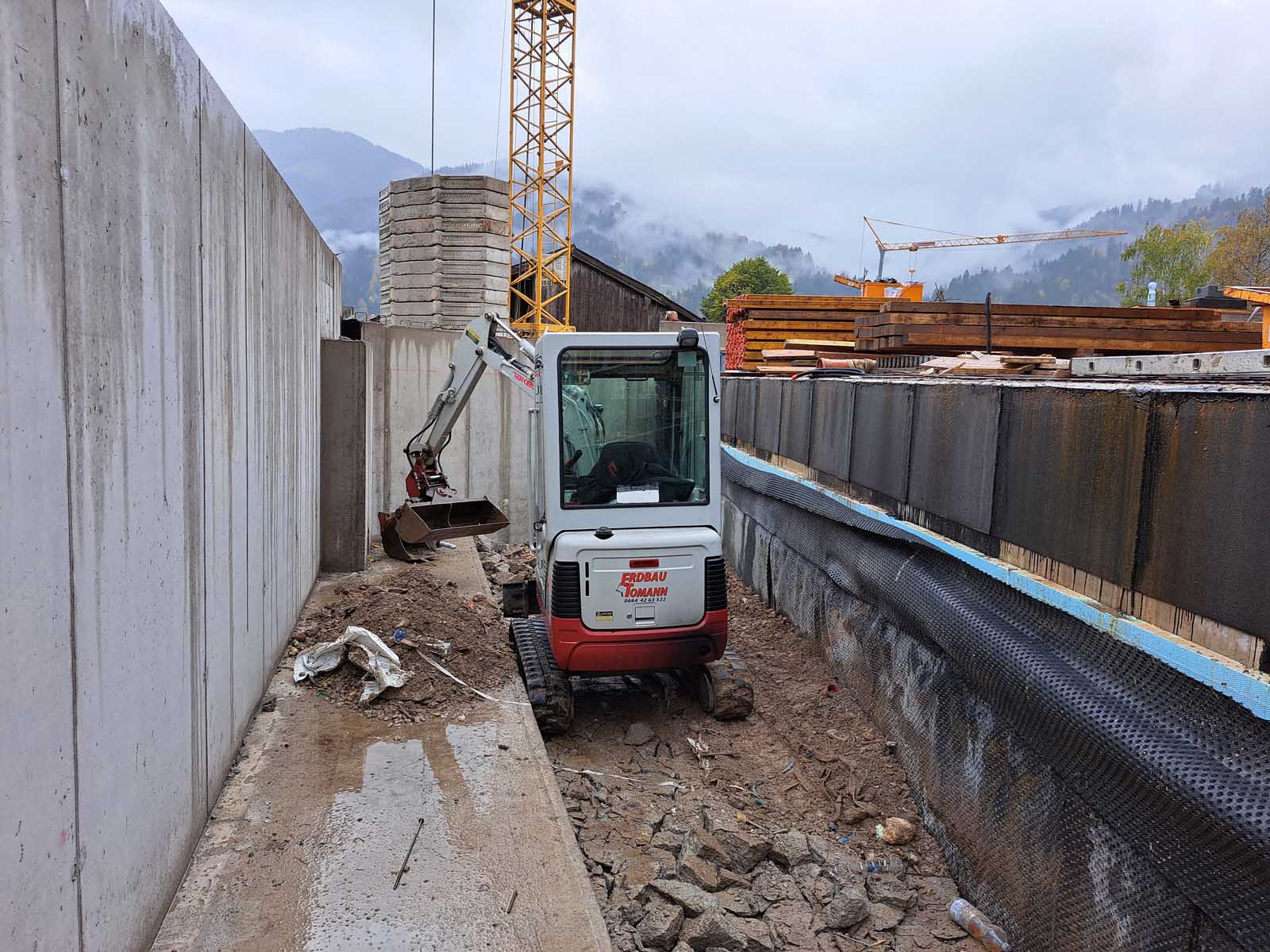 Mit Erdbau Tomann bieten wir Ihnen präzise Aushübe aller Art, Leitungsbauten (Kanal, Strom, Wasser), Straßen- und Wegebau sowie Sanierungen. Wir übernehmen Steinschlichtungen und bauen Natursteinmauern, setzen bewehrte Erde ein und führen Spezialaufträge und -arbeiten durch. Unsere modernen Maschinen und erfahrenen Teams sorgen für effiziente, zuverlässige und maßgeschneiderte Lösungen, ganz nach Ihren Bedürfnissen. Vertrauen Sie auf unsere Expertise und Technik, um Ihr Projekt erfolgreich umzusetzen. Kontaktieren Sie uns für ein individuelles Angebot!